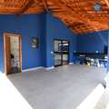 O exterior da casa se destaca pela fachada na cor azul, que combina charme e exclusividade, enquanto o interior, pintado em branco, reflete luz natural e exala um ar de modernidade.