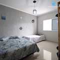 Com 1 quarto e 1 banheiro social no piso térreo e 2 quartos sendo 1 suíte no piso superior.
